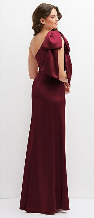 One-Shoulder Satin Maxi Dress with Chic Oversized Shoulder Bow in cabernet