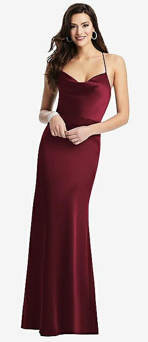 Cowl-Neck Criss Cross Back Slip Dress in cabernet