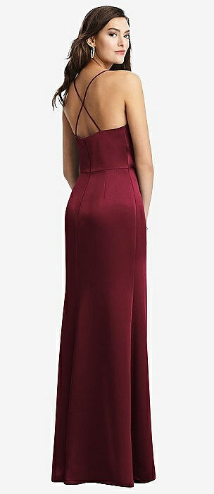 Draped Twist Halter Tie-Back Trumpet Gown in cabernet
