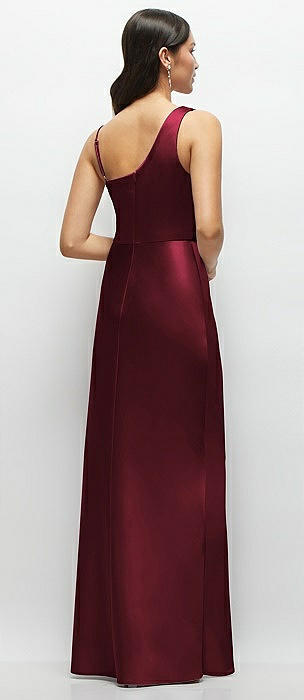Bow One-Shoulder Full A-Line Satin Maxi Dress in cabernet