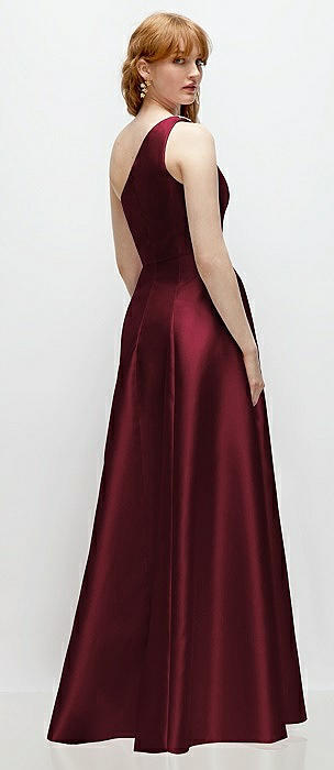 Bow One-Shoulder Full A-Line Satin Maxi Dress in cabernet