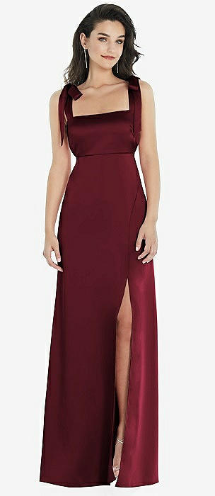 Flat Tie-Shoulder Empire Waist Maxi Dress with Front Slit in cabernet