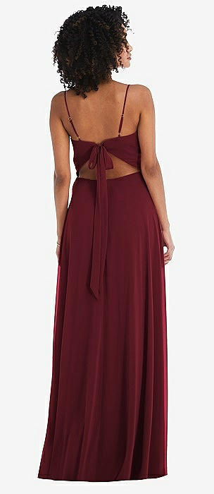 Tie-Back Cutout Maxi Dress with Front Slit in cabernet