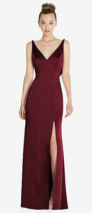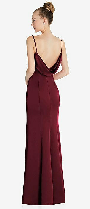 Draped Cowl-Back Princess Line Dress with Front Slit in cabernet