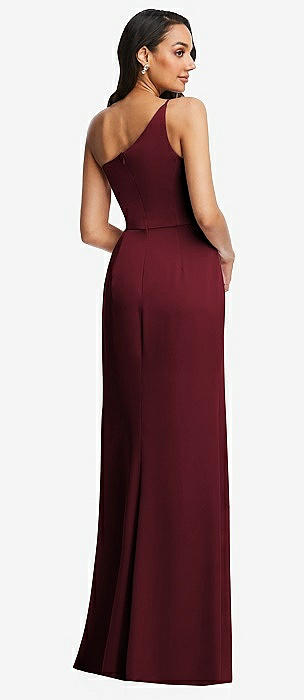 One-Shoulder Draped Skirt Satin Trumpet Gown in cabernet