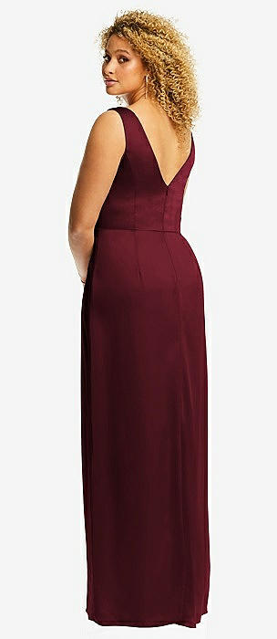 Sleeveless Draped Wrap Bodice Stretch Satin Column Maxi Dress in cabernet