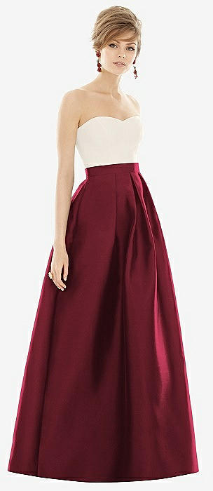 Strapless Pleated Skirt Maxi Dress with Pockets in cabernet