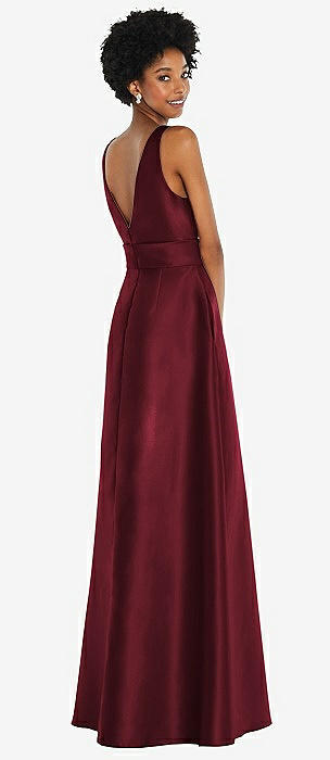 Jewel-Neck V-Back Maxi Dress with Mini Sash in cabernet