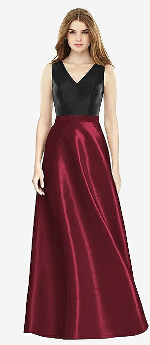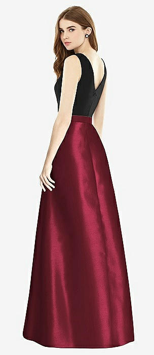 V-Neck Full Skirt Satin Maxi Dress in cabernet