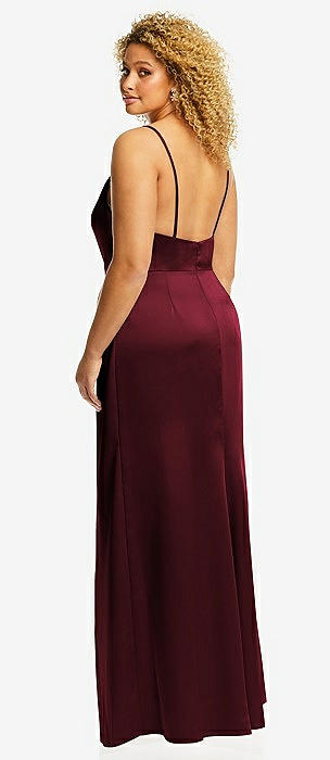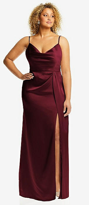 Cowl-Neck Draped Wrap Maxi Dress with Front Slit in cabernet