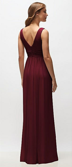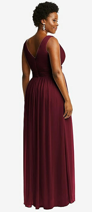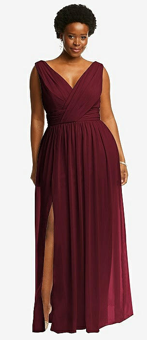 Sleeveless Draped Chiffon Maxi Dress with Front Slit in cabernet