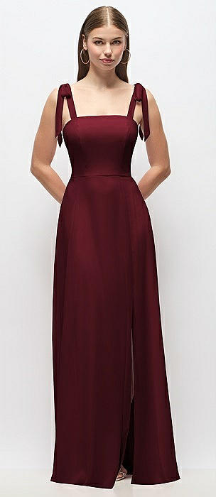 Square-Neck Satin Maxi Dress with Full Skirt in cabernet