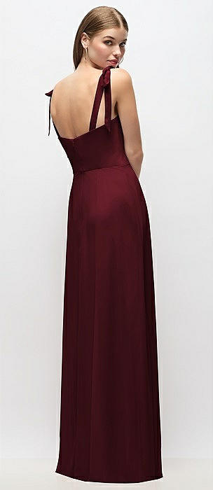 Tie-Shoulder Chiffon Maxi Dress with Front Slit in cabernet