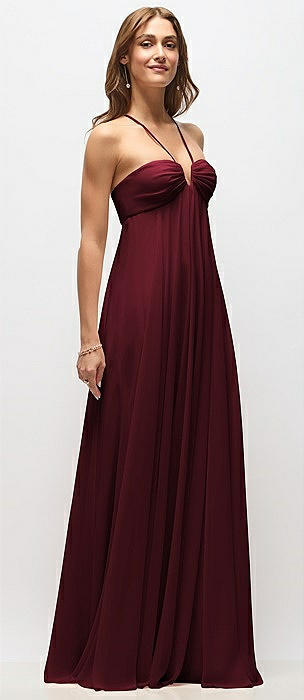 Empire Waist Chiffon Halter Maxi Dress with Convertible Spaghetti Straps in cabernet