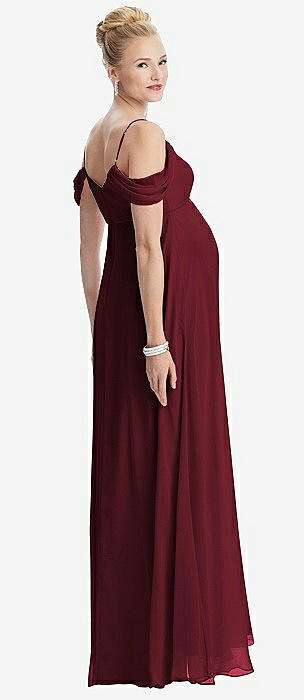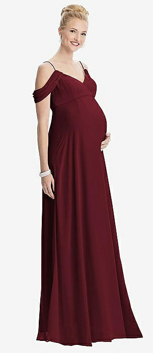 Draped Cold-Shoulder Chiffon Maternity Dress in cabernet