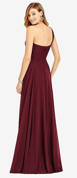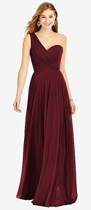 One-Shoulder Draped Chiffon Maxi Dress - Dani in cabernet