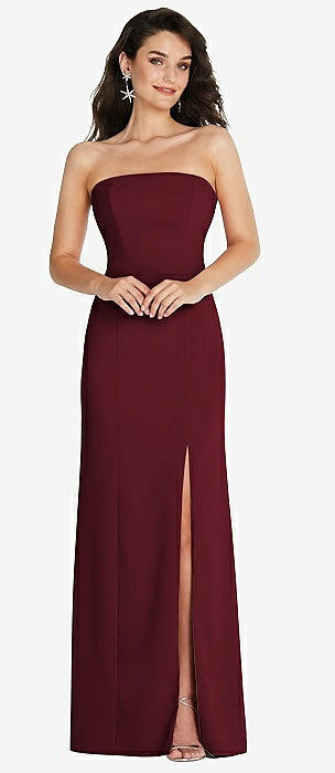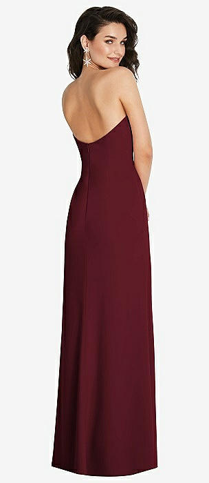 Strapless Scoop Back Maxi Dress with Front Slit in cabernet