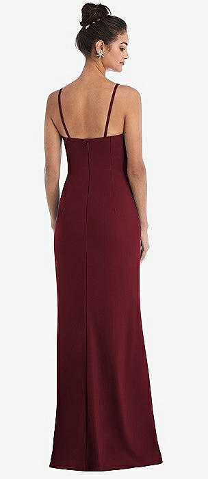Tie-Back Cutout Trumpet Gown with Front Slit in cabernet