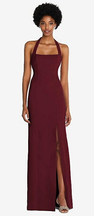 Square-Neck Satin A-line Maxi Dress with Front Slit in cabernet