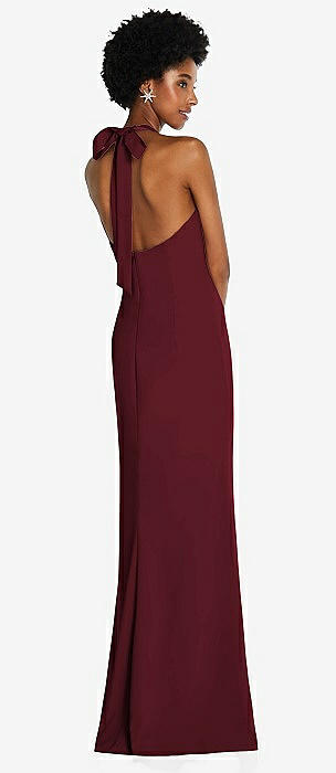 Cowl-Neck Wide Strap Crepe Trumpet Gown with Front Slit in cabernet