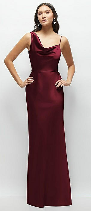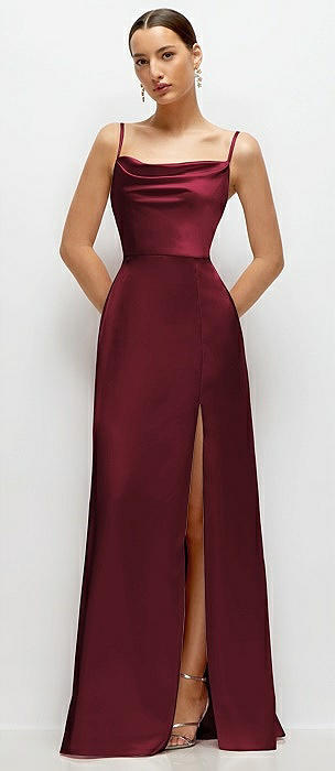 Cowl Neck Satin Maxi Dress with Adjustable Spaghetti Straps in cabernet