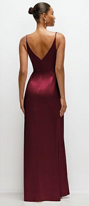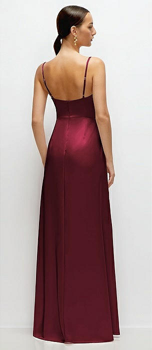 Square-Neck Satin A-line Maxi Dress with Front Slit in cabernet