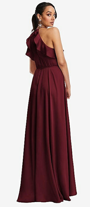 Square-Neck Satin A-line Maxi Dress with Front Slit in cabernet