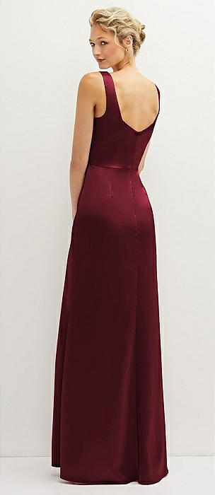 Square-Neck Satin A-line Maxi Dress with Front Slit in cabernet