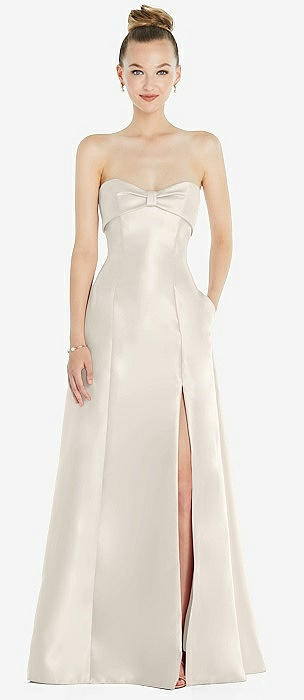 Strapless Cuff Satin Maxi Dress with Column Skirt & Back Bow in ivory