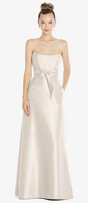 Tie-Back Cutout Trumpet Gown with Front Slit in ivory