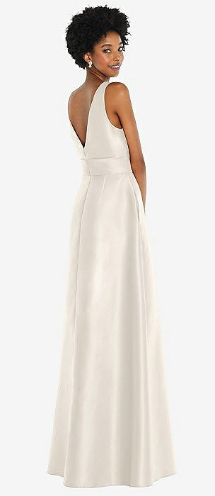 Draped One-Shoulder Satin Maxi Dress with Pockets in ivory