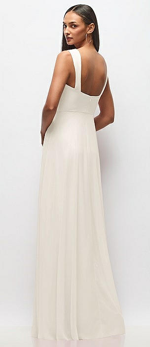 One-Shoulder Chiffon Maxi Dress with Shirred Front Slit in ivory