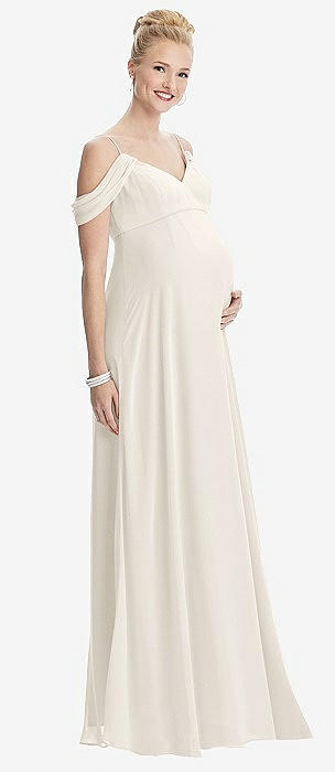 Off-the-Shoulder Draped Chiffon Maxi Dress in ivory