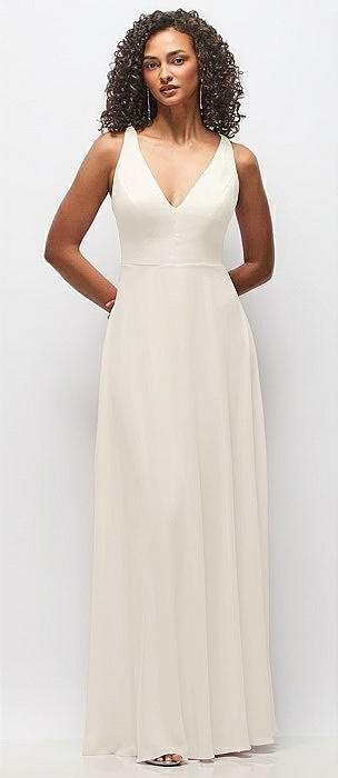 Sleeveless V-Neck Chiffon Wrap Dress in ivory