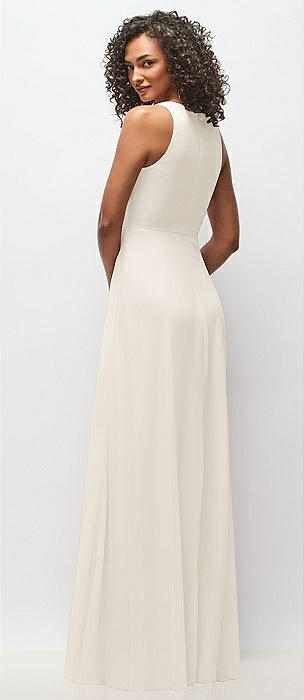 Sleeveless Draped Chiffon Maxi Dress with Front Slit in ivory