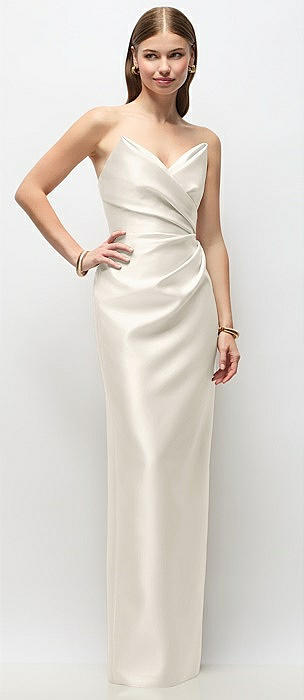 Strapless Crepe Tuxedo Gown with Satin Lapels and Buttons in ivory