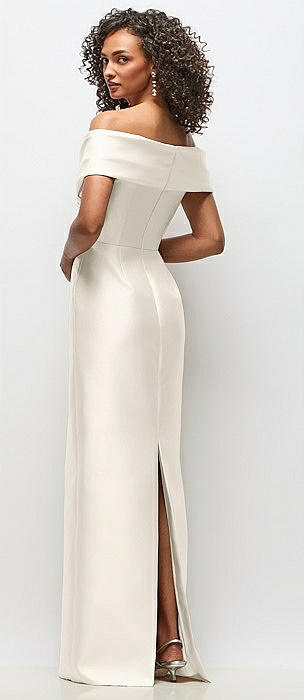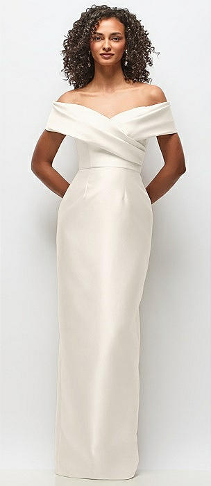Draped Wrap Off-the-Shoulder Satin Column Floral Maxi Dress in ivory