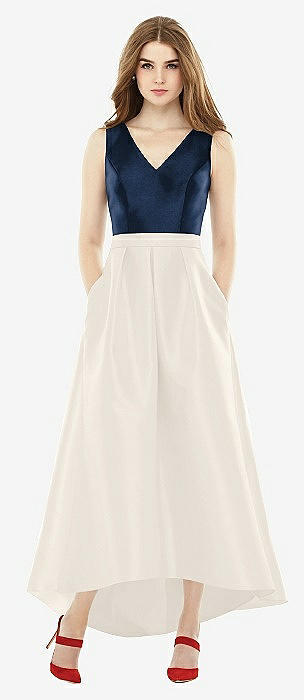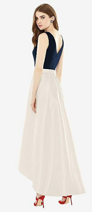 Bateau Neck Satin High Low Cocktail Dress in ivory