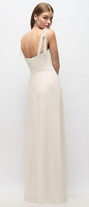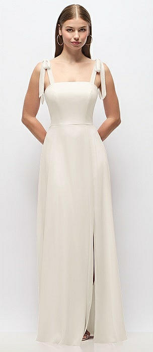 Tie-Shoulder Chiffon Maxi Dress with Front Slit in ivory