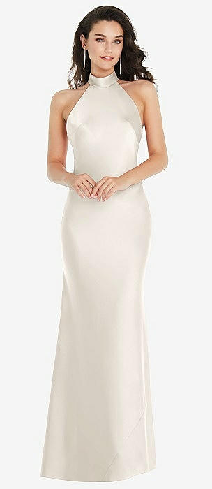 Draped Twist Halter Tie-Back Trumpet Gown in ivory