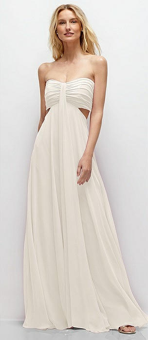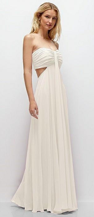 Strapless Empire Waist Cutout Maxi Dress with Covered Button Detail in ivory