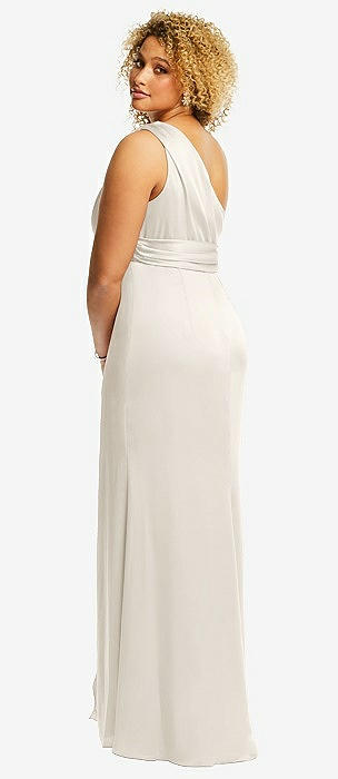 One-Shoulder Draped Twist Empire Waist Trumpet Gown in ivory