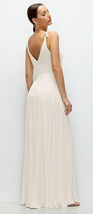 Cowl Neck Chiffon Maxi Dress with Hand-Worked Petal Straps in ivory