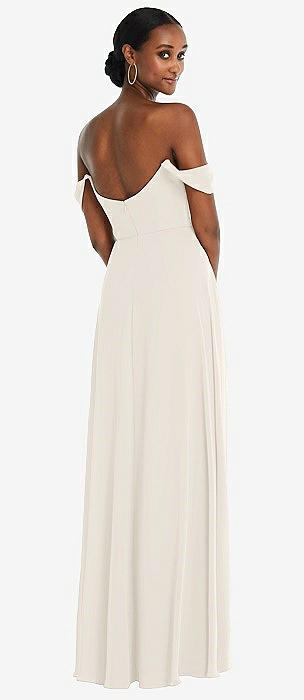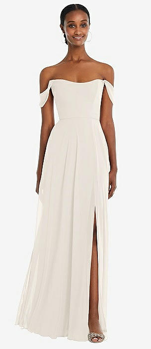 Off-the-Shoulder Basque Neck Maxi Dress with Flounce Sleeves in ivory