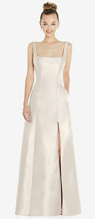 Sleeveless Square-Neck Princess Line Gown with Pockets in ivory