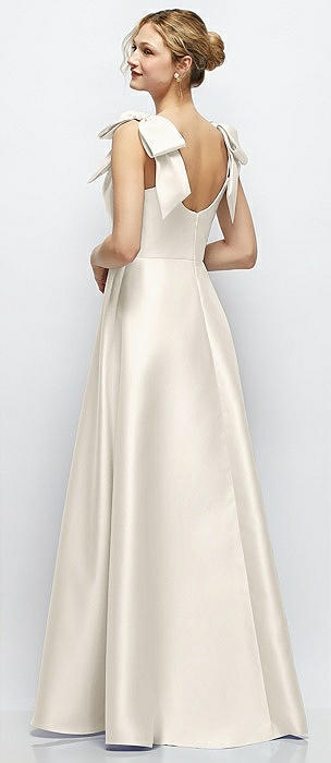 Bateau Neck Satin Column Maxi Dress with Exaggerated Tail Bow Straps in ivory