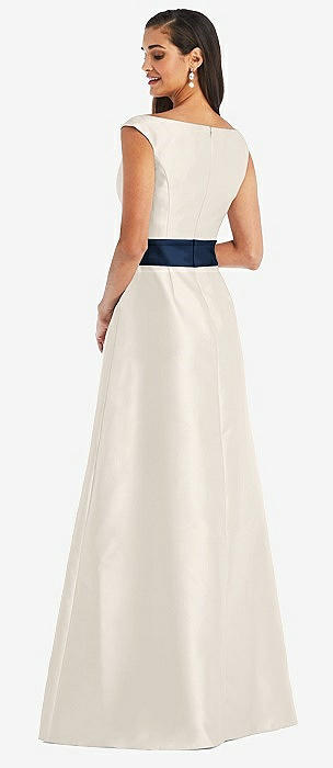 Boned Corset Closed-Back Satin Gown with Full Skirt and Pockets in ivory