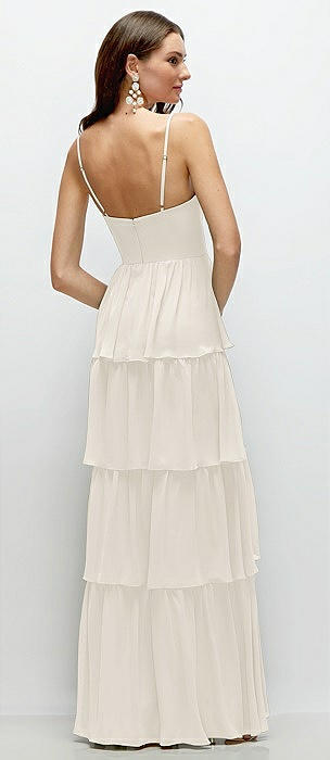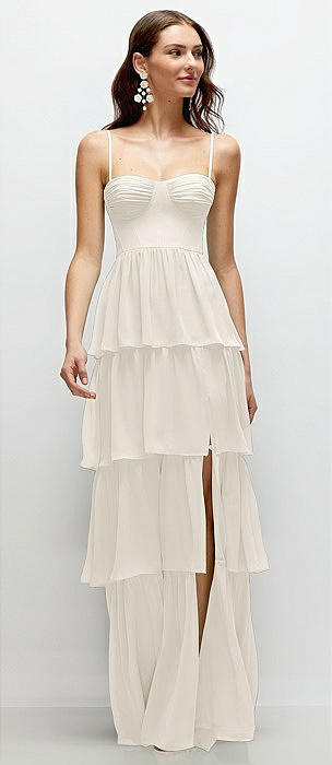 Bustier-Style Chiffon Tiered Ruffle Maxi Dress with Adjustable Straps in ivory