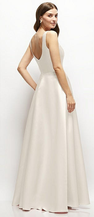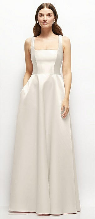 Square-Neck Satin Maxi Dress with Full Skirt in ivory