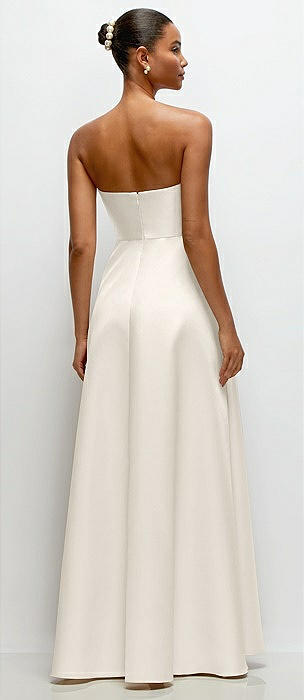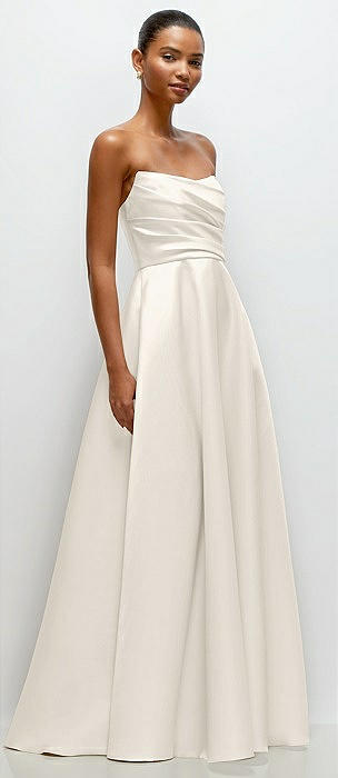 Strapless Draped Cat-Eye Satin Maxi Dress with Full Skirt in ivory